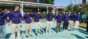 首個重磅項目——“十人九足一圈到底”協同賽,將賽事推向了第一個高潮。這是一個極其考驗團隊協調性與統一性的復合型項目,要求十名隊員不僅要用綁帶將相鄰的腿兩兩綁住,形成“十人條腿”的奇特模式協同前行,還需在到達終點后共同協作,讓一個呼啦圈穿過所有人的身體,完成“一圈到底”。