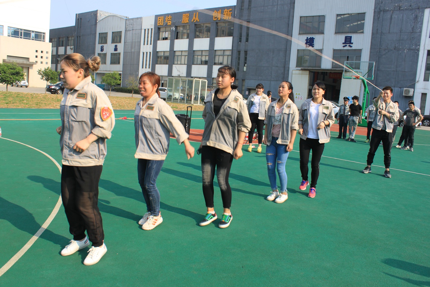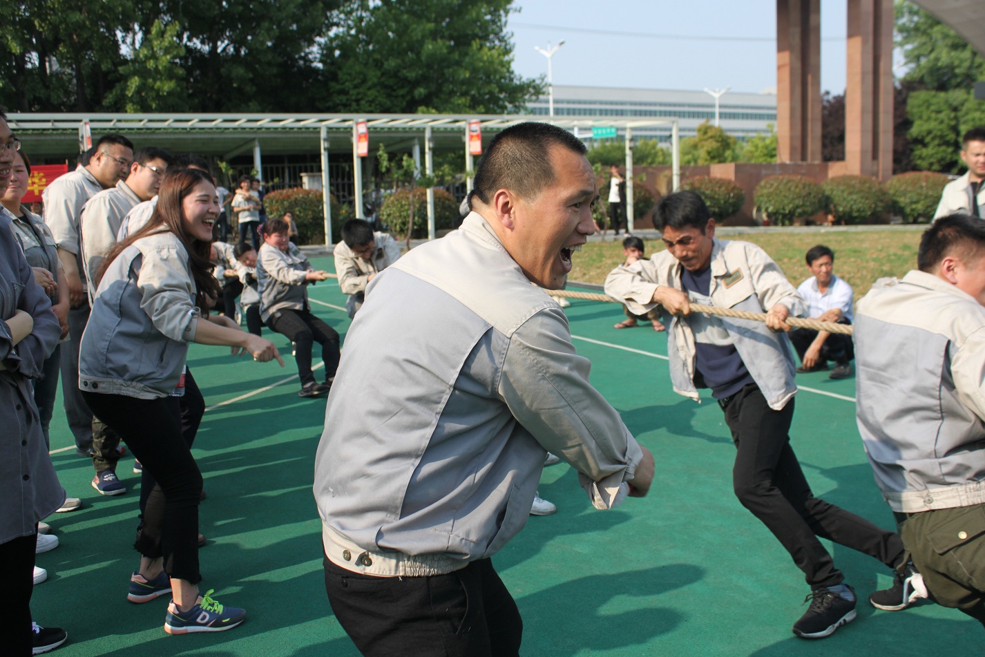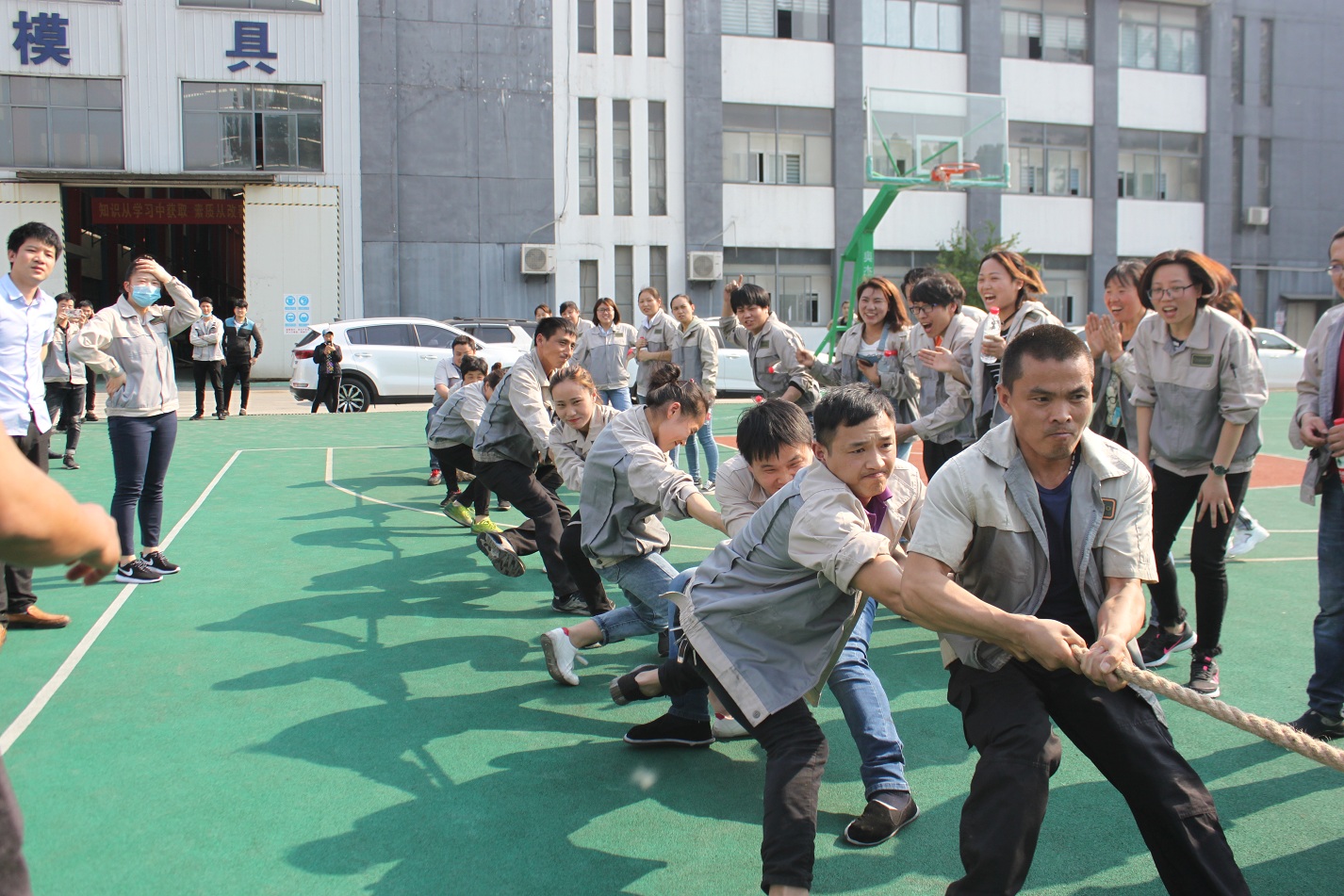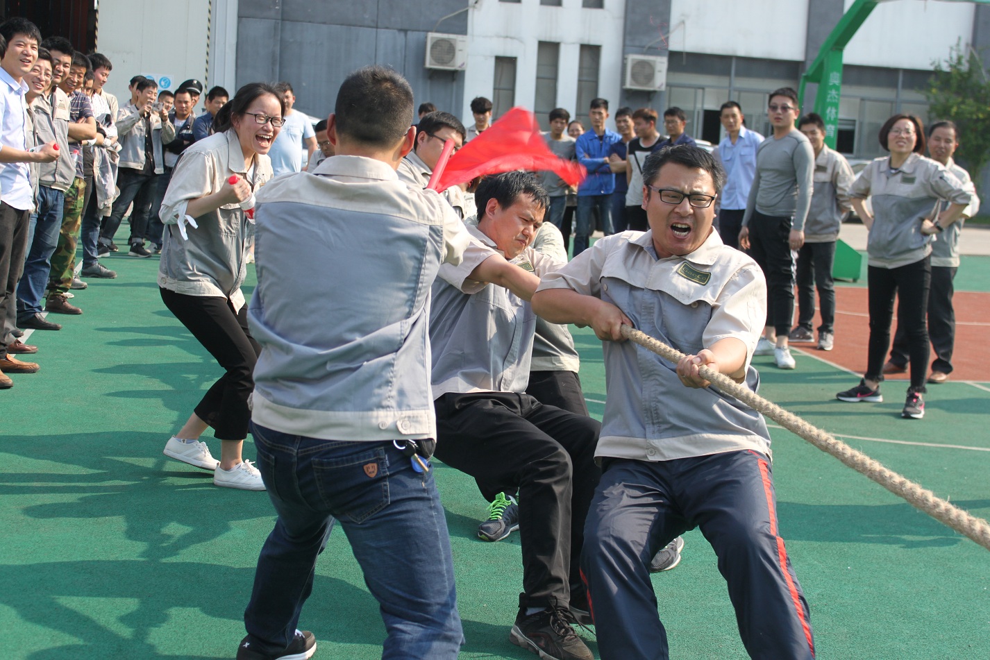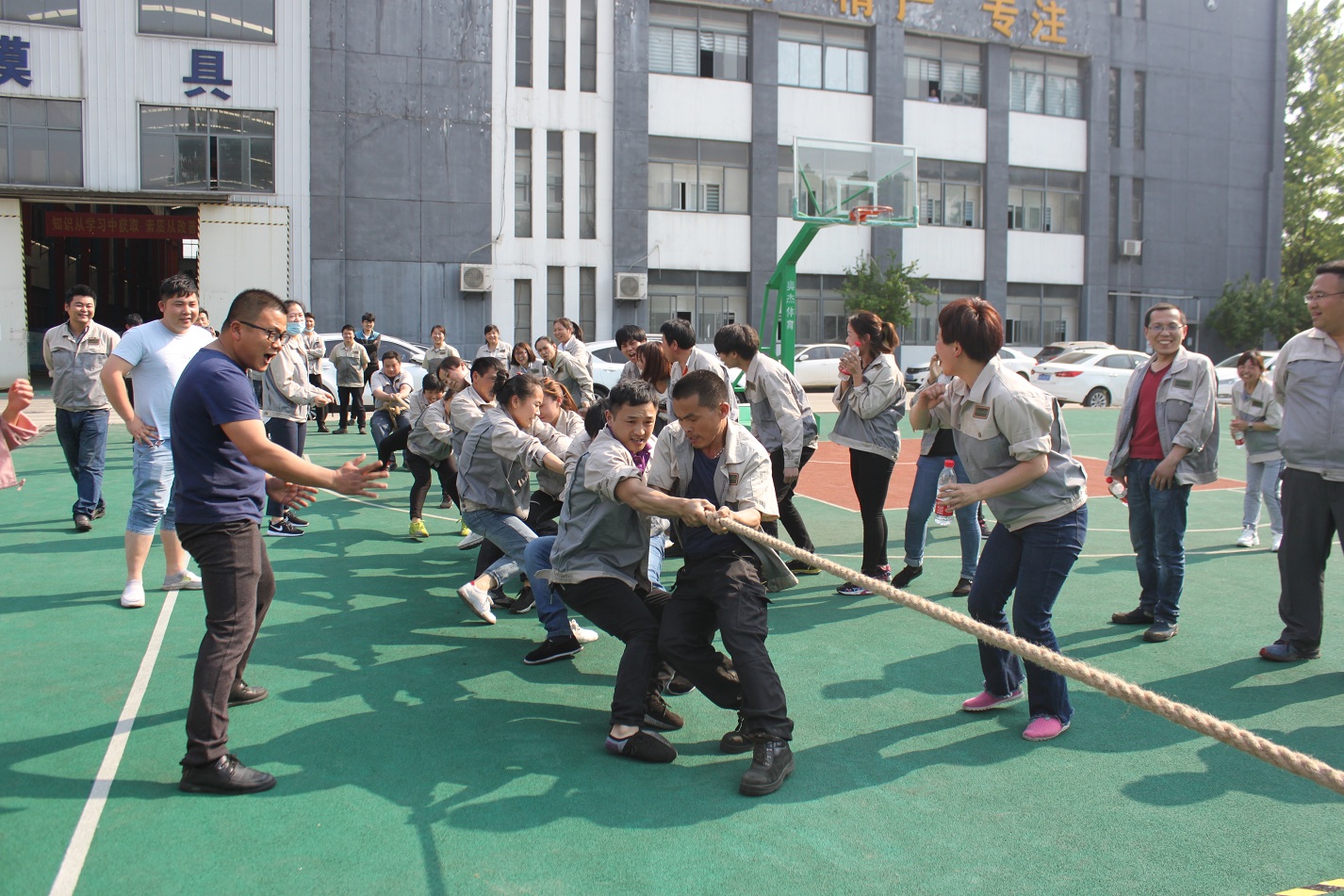 首先進行的活動是拔河,參與活動的共有七支隊伍,分別是:鈑金事業部一戰隊、鈑金事業部二戰隊、彩晶事業部戰隊、模具事業部戰隊、鈑金加工部戰隊、惠爾科戰隊、職能部門戰隊,每個戰隊分別由5男5女組成,共10人。